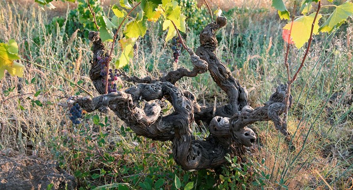 Calabretta’s vineyards are located nearly a half mile above sea level in the black volcanic soils of Etna’s north slope, between Randazzo and Castiglione di Sicilia. There, Calabretta farms roughly seven hectares of mostly 70- to 80-year-old vines—many of them ungrafted—on stepped terraces supported by stone walls.