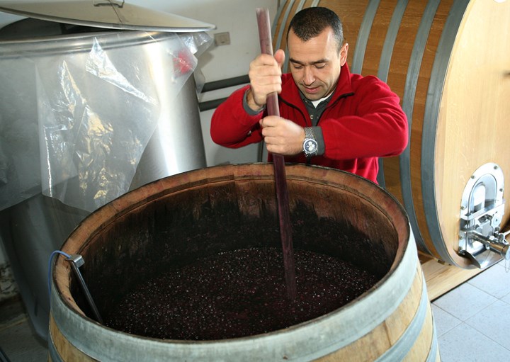 If you do find him indoors, it’s likely in one of two places: his small cellar where he hand-makes a couple thousand cases of wine, or his even smaller family bar a half-mile’s walk away, home to rustic, hearty meals, and healthy pours of his own wine.