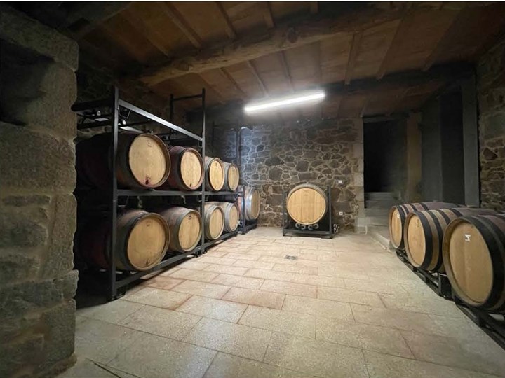 White grapes are much rarer in the appellation, but the couple has small plots in the Quiroga sub-zone on the slate soils, and another near their winery in the Ribeiras do Miño sub-zone. The younger white vineyards are mostly trained on wires to help fight mildew pressure in this damp climate.